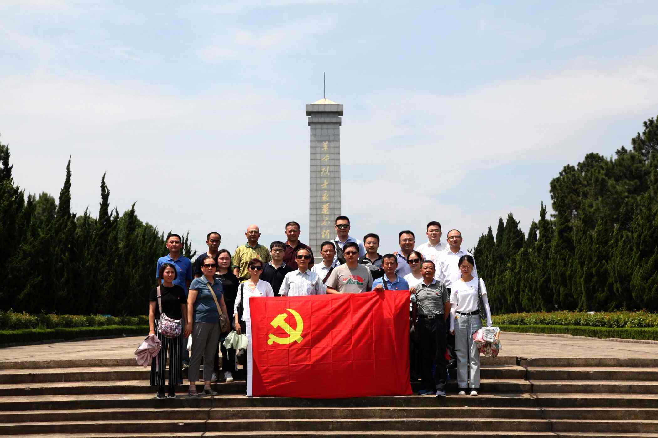 正午時分,大家揮汗如雨,馬不停蹄地來到巢湖南山烈士陵園。在高高的英雄紀念碑下,公司黨委為新入黨的預備黨員舉行了莊重的入黨宣誓,全體黨員重溫了入黨誓詞,繞場一周瞻仰了英雄紀念碑,緬懷革命先烈,接受革命精神洗禮。